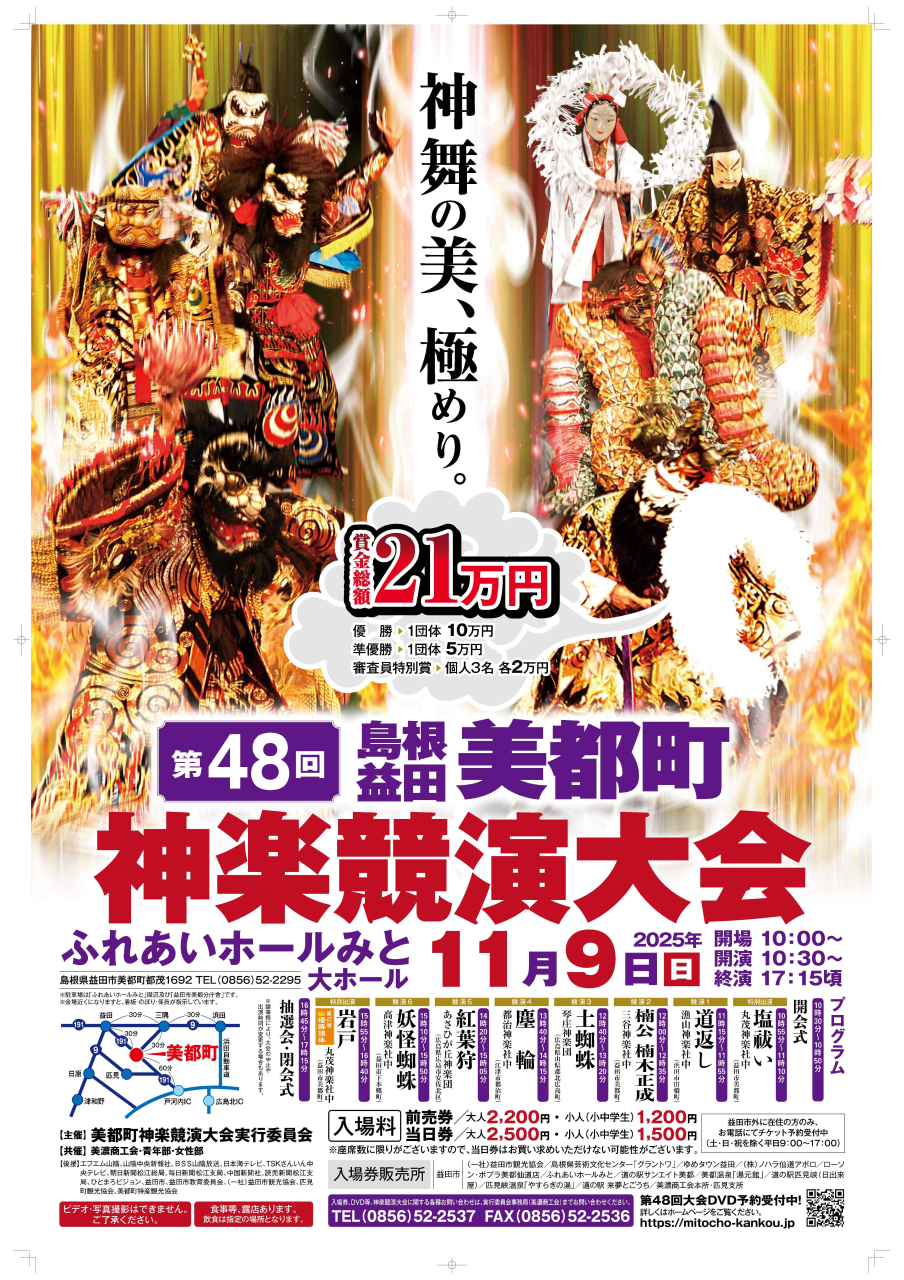 お問合せ:美都町神楽競演大会実行委員会(美濃商工会内)TEL0856-52-2537/FAX0856-52-2536